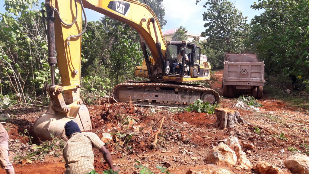 Während wir weiterhin an der Kantine beschäftigt waren, fing schon das nächste Projekt an: Weitere Klassenräume sollten her. Da sich an der dafür geplanten Stelle ein steiniger Hang befand, musste mit viel Muskelkraft das Gelände eingeebnet werden und sichergestellt werden, dass der Baugrund dem zukünftigen Gebäude standhält. Dabei leisteten unsere lokalen Helfer große Arbeit und richteten innerhalb kürzester Zeit den Baugrund so her, dass mit den Fundamenten der Klassenräume begonnen werden konnte.