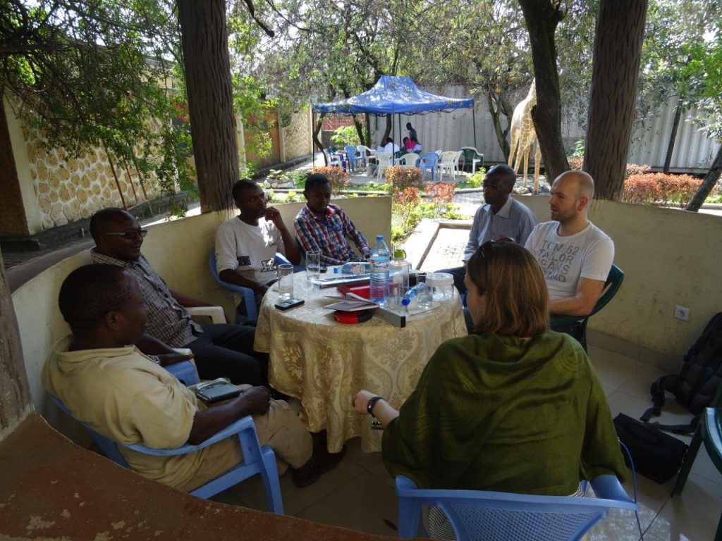 Am ersten Tag haben wir uns mit Ingenieuren der Fakultät „Angewandte Technik“ der ULPGL (einer Universität in Goma) getroffen. Mit ihnen haben wir unsere Pläne zum Bau eines Miniwasserkraftwerks besprochen. Dabei haben wir viele Ratschläge und Ideen aus ihren Erfahrungen mit hiesigen Anlagen erhalten.