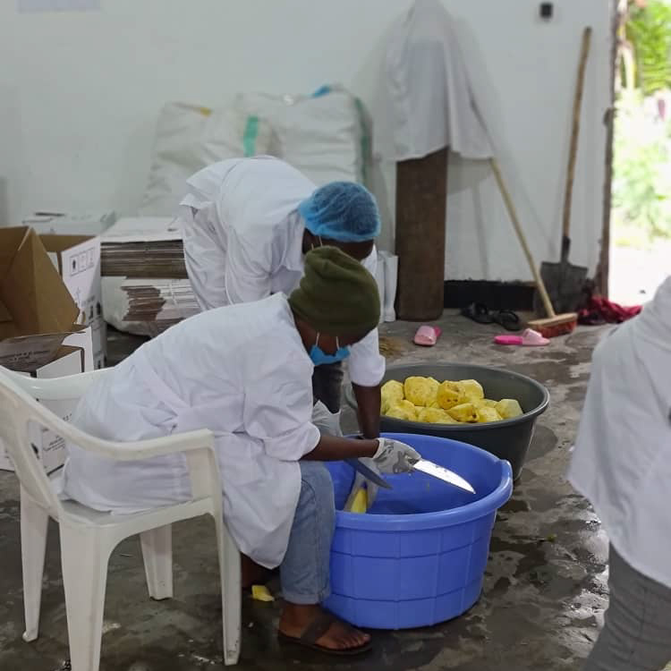 Einer diese Betriebe ist die Saftfabrik, die weiterhin auf Hochtouren läuft. Auf den Bildern sieht man die Angestellten von PROLASA bei der Produktion von leckerem Ananassaft!